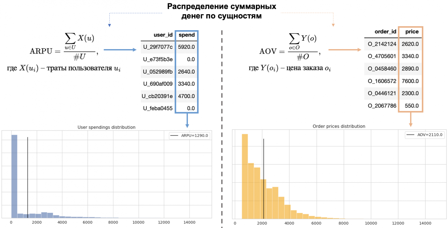 Π’Π°ΠΊΠΆΠ΅, ΠΌΠΎΠΆΠ½ΠΎ ΡΠ³ΡΡΠΏΠΏΠΈΡΠΎΠ²Π°ΡΡ Π΄Π°Π½Π½ΡΠ΅ ΠΏΠΎ ΠΏΠΎΠ»ΡΠ·ΠΎΠ²Π°ΡΠ΅Π»ΡΠΌ ΠΈ Π΄Π»Ρ ΠΊΠ°ΠΆΠ΄ΠΎΠ³ΠΎ ΠΎΠΏΡΠ΅Π΄Π΅Π»ΠΈΡΡ Π΅Π³ΠΎ ΡΡΠ°ΡΡ, ΠΏΠΎΡΡΡΠΎΠΈΡΡ ΠΈΡ ΡΠ°ΡΠΏΡΠ΅Π΄Π΅Π»Π΅Π½ΠΈΠ΅, Π° ΡΡΠ΅Π΄Π½ΠΈΠΌ Π·Π½Π°ΡΠ΅Π½ΠΈΠ΅ΠΌ ΡΡΠΎΠ³ΠΎ ΡΠ°ΡΠΏΡΠ΅Π΄Π΅Π»Π΅Π½ΠΈΡ ΠΈ Π±ΡΠ΄Π΅Ρ ARPU. ΠΡΠΎΠ΄Π΅Π»Π°Π² ΡΠΎ ΠΆΠ΅ ΡΠ°ΠΌΠΎΠ΅ Ρ Π·Π°ΠΊΠ°Π·Π°ΠΌΠΈ, Π² ΡΠ°ΡΠΏΡΠ΅Π΄Π΅Π»Π΅Π½ΠΈΠΈ ΠΈΡ ΡΠ΅Π½ ΡΡΠ΅Π΄Π½ΠΈΠΌ Π·Π½Π°ΡΠ΅Π½ΠΈΠ΅ΠΌ Π±ΡΠ΄Π΅Ρ ΡΡΠ΅Π΄Π½ΠΈΠΉ ΡΠ΅ΠΊ. ΠΡ ΠΏΡΠΎΡΡΠΎ ΠΏΠ΅ΡΠ΅ΡΠ°ΡΠΏΡΠ΅Π΄Π΅Π»ΡΠ΅ΠΌ ΠΎΠ±ΡΠΈΠΉ ΠΌΠ°ΡΡΠΈΠ² ΡΠ΅Π³ΠΎ-ΡΠΎ Π½Π° ΠΊΠ°ΠΊΠΈΠ΅-ΡΠΎ ΡΠ°Π·Π»ΠΈΡΠ½ΡΠ΅ Π΅Π΄ΠΈΠ½ΠΈΡΡ Π°Π½Π°Π»ΠΈΠ·Π°.