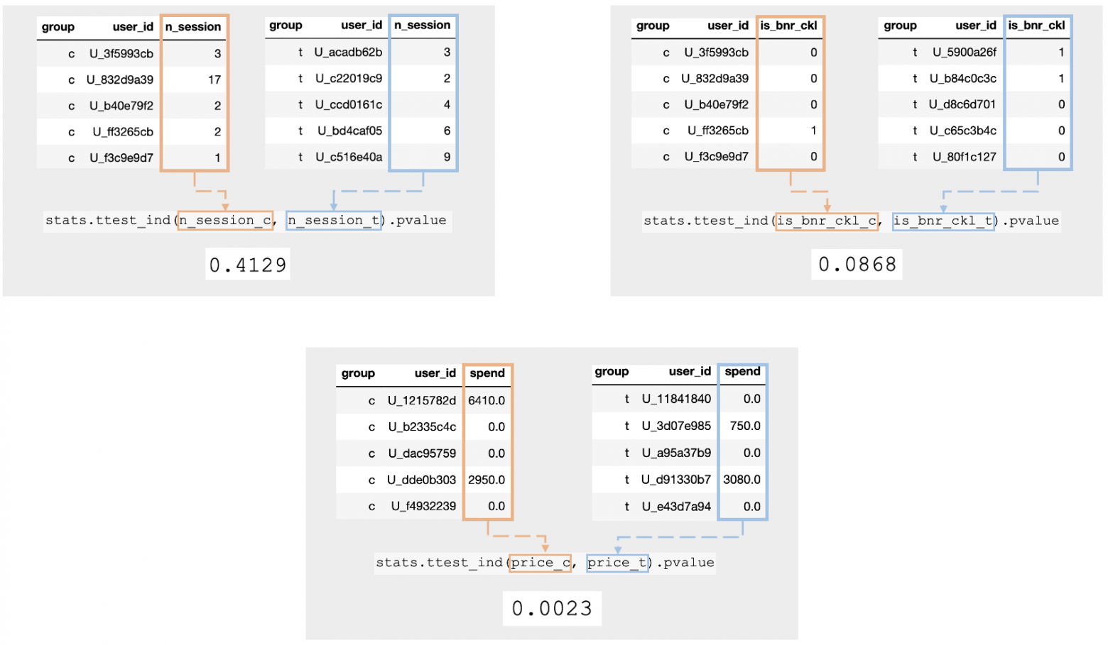 def linearization(df_a, df_b, id_column='user_id', value_column='revenue'):